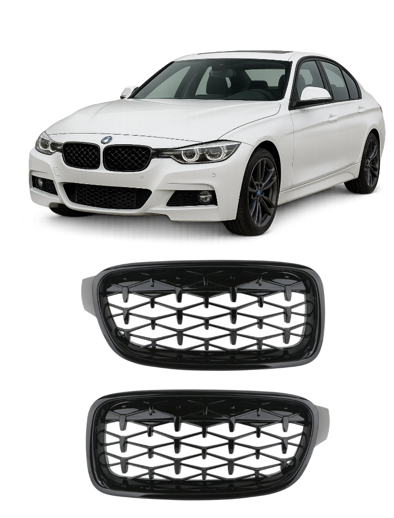 Grillenset Nieren – BMW 3-serie F30 (2012–2018) – Glanzend Zwart Diamond