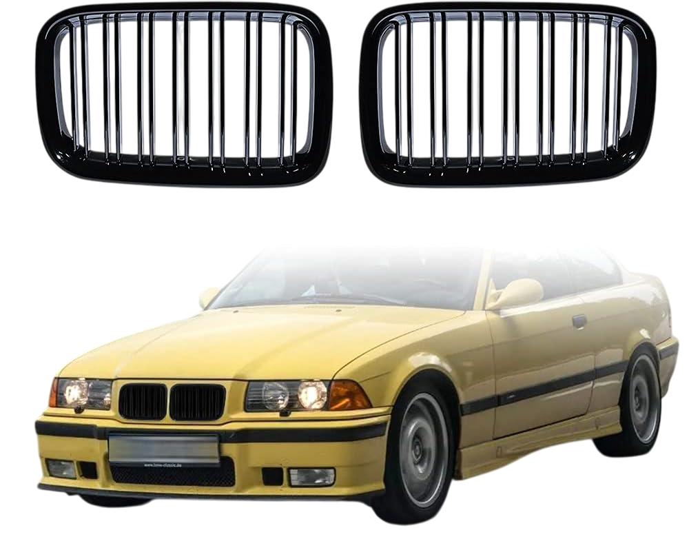 Geef je BMW 3-Serie E36 (1992-1996) een sportieve en luxe uitstraling met deze hoogwaardige glanzend zwarte grillenset. Perfect passend voor jouw E36, zijn deze nieren gemaakt van duurzaam materiaal en bieden ze een stijlvolle upgrade voor de voorzijde. Met een eenvoudige montage en een strakke, moderne look is dit de ideale keuze voor BMW-liefhebbers die hun auto een premium uitstraling willen geven.