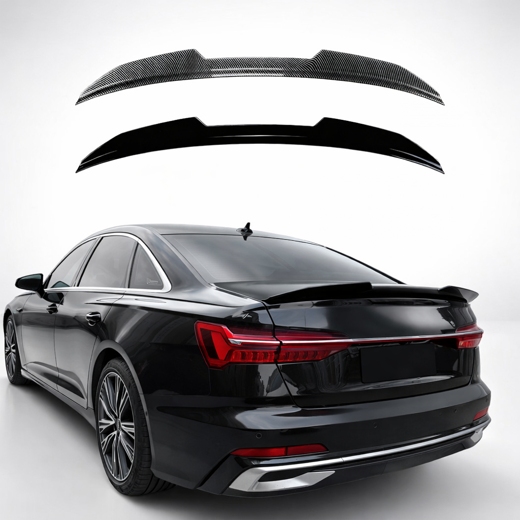 Voertuigspecifieke pasvorm voor de Audi A6 C8; sluit netjes aan op de originele lijnen van de kofferklep en achterzijde.