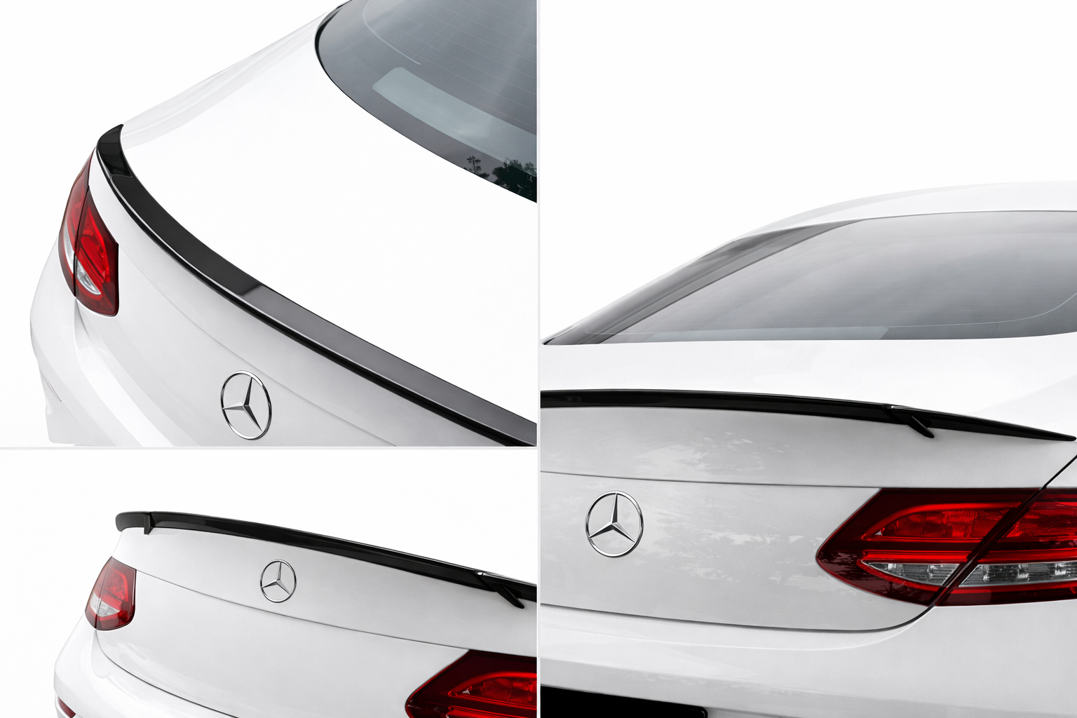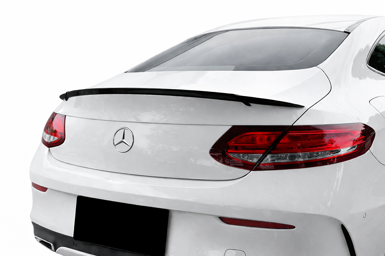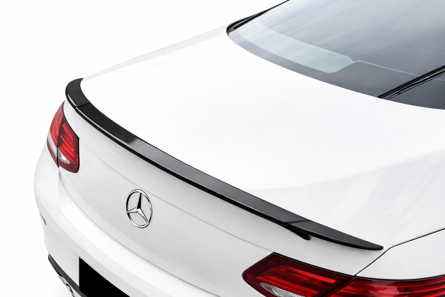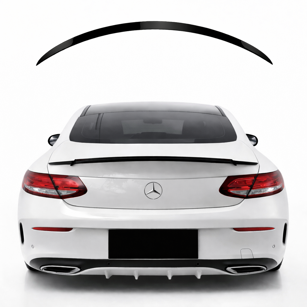 Voertuigspecifieke pasvorm voor de Mercedes-Benz C-klasse Coupé C205; sluit netjes aan op de originele lijnen van de kofferklep en achterzijde.