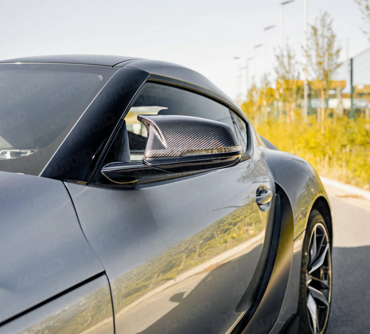 M-look spiegelbehuizing in carbon look. Passend voor BMW 1-serie F40, 2-serie F45 / F46, X1 F48, X2 F39 & Z4 Roadster G24, GR Supra A90 .