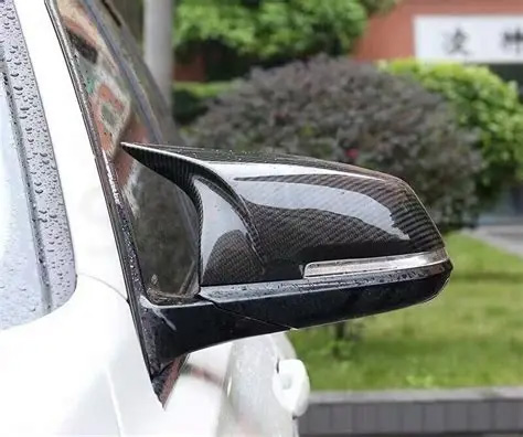 De spiegelbehuizing in carbon look. Door de verfijnde afwerking passen de spiegelkappen goed bij de glanzend zwarte details van uw auto.