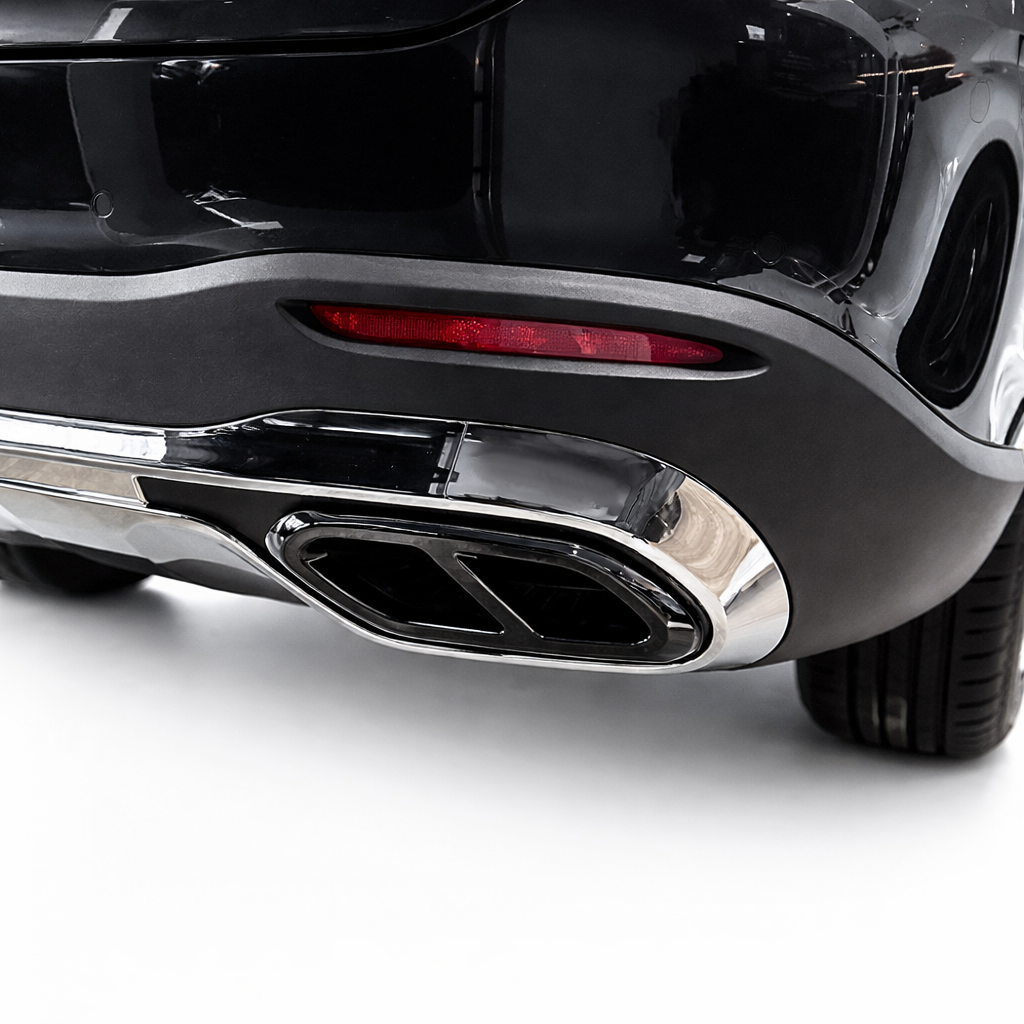 Geef de achterzijde van uw Mercedes-Benz GLC-klasse X254/C254 (2023+) een krachtige en stijlvolle upgrade met deze 63 AMG-look uitlaatsierstuk cover set in glanzend zwart. De covers zorgen voor een strakkere, vollere uitstraling van de uitlaatpartij en geven de diffuserzone direct een hoogwaardige, sportieve look. De set is vervaardigd uit hoogwaardig ABS-kunststof en ontworpen voor een voertuigspecifieke pasvorm.