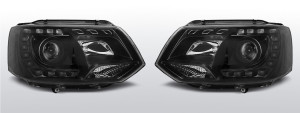 Koplampen dagrijverlichting xenon look | Volkswagen T5 facelift 2009-2015 | Zwart met xenon look lens