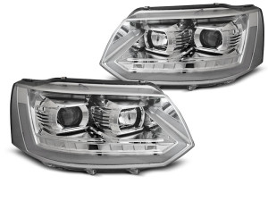 Koplampen | Volkswagen | Multivan 10-15 5d bus. / Transporter Kombi 10-15 4d bus. | T6-Look | REAL DRL | Dynamic Turn Signals | Tube Light chroom