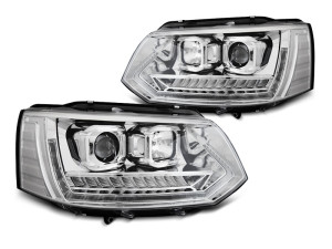 Koplampen | Volkswagen | Multivan 10-15 5d bus. / Transporter Kombi 10-15 4d bus. | T6-Look | LED | Tube-Light | Real DRL | Dynamic Turn Signal | chroom