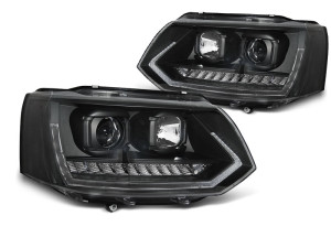 Koplampen | Volkswagen | Multivan 10-15 5d bus. / Transporter Kombi 10-15 4d bus. | T6-Look | LED | Tube-Light | Real DRL | Dynamic Turn Signal | zwart