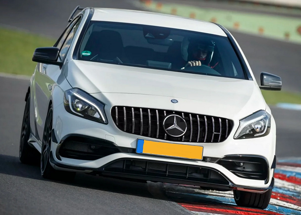 Geef uw Mercedes-Benz A-Klasse W176 (2012–2018) een sportieve en stijlvolle uitstraling met deze ongespoten A45 AMG Facelift-Look voorbumper.