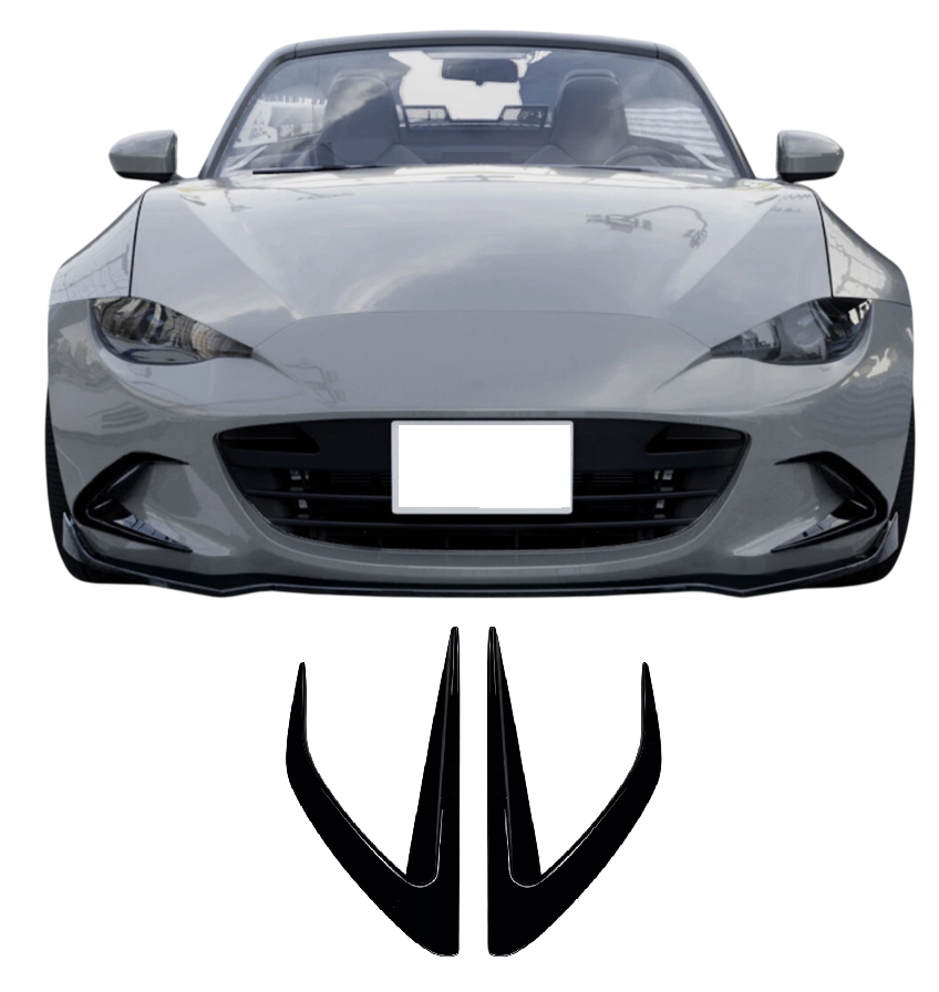 Met deze glanzend zwarte aero blades geeft u uw Mazda MX-5 Miata ND een nog sportievere en dynamischere uitstraling. De voorbumper splitter verbetert niet alleen het uiterlijk, maar draagt ook bij aan de aerodynamica van het voertuig. De Carnamic canards zijn vervaardigd uit hoogwaardig ABS-kunststof en worden geleverd in een glanzend zwarte afwerking. Perfecte pasvorm!